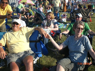 Here are pictures of the balloons. My favorite was Sugar Bear (after the cereal). There were a lot of Kellogg balloons. The good part for us was that there was virtually no wind. So once the balloons launched, they just kind of hung out in the air right by us. It was pretty cool. It was not so cool for the balloons however. Some of them had issues & began to sink. I had to cheer Sugar Bear on... because you know they can hear everything up there!